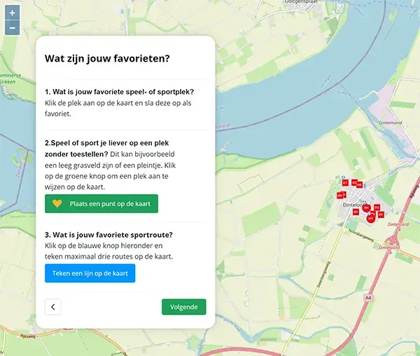 De Buitenkanskaart maakt het verzamelen van waardevolle input eenvoudig! Met interactieve kaart-vragen kun je gemakkelijk informatie ophalen over hoe mensen hun omgeving beleven.